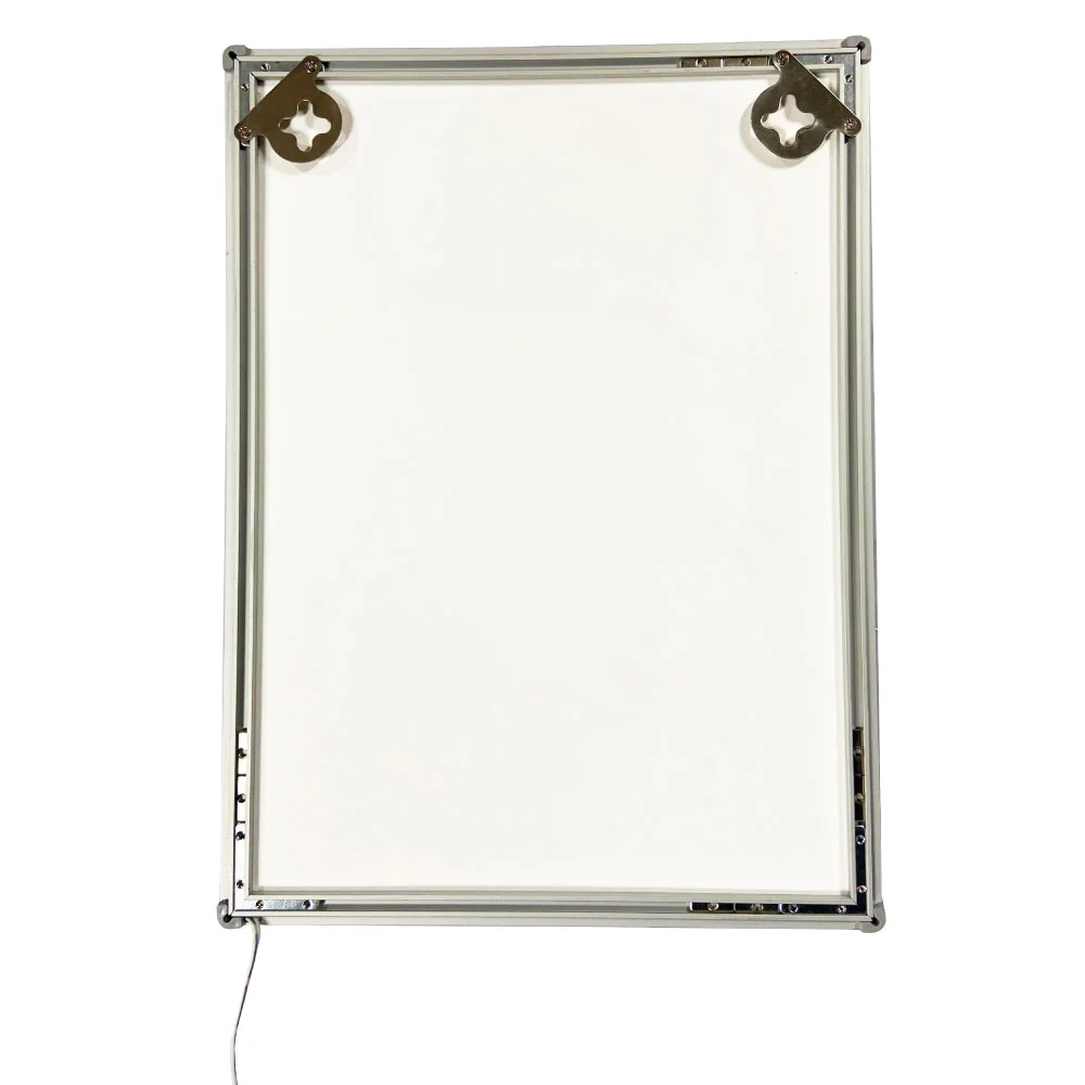 ultra thin light box, extremely transparent tempered glass panel, poster changing within seconds, adaptor included, silver and black aluminum frame available